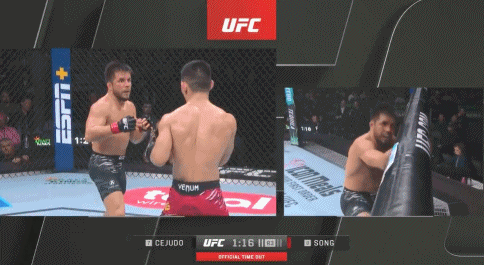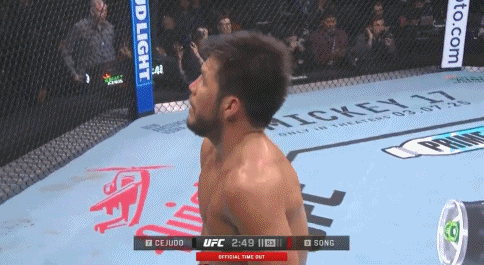 02月23日讯 UFC西雅图头条主赛,宋亚东vs赛胡多。裁判宣布宋亚东获胜。